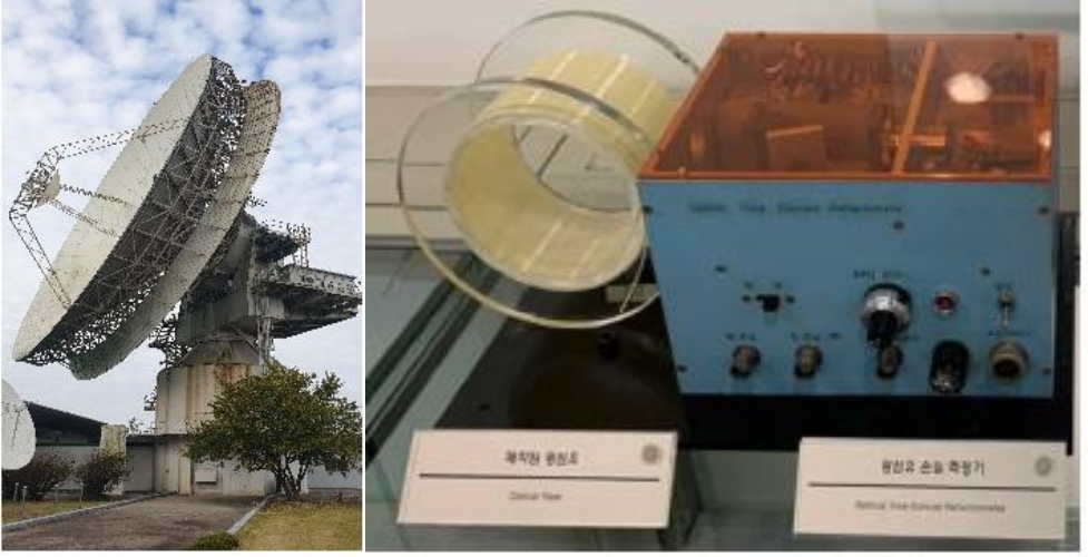 | ▲ 금산위성통신 제1지구국 안테나 설비(왼쪽)와 광통신용 광섬유 초기개발품 [국립중앙과학관 제공. 재판매 및 DB 금지] |