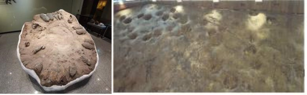| ▲ 수각류 공룡알 둥지 화석(왼쪽)과 공룡ㆍ익룡ㆍ새 발자국 화석 [국립중앙과학관 제공. 재판매 및 DB 금지] |