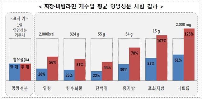 "짜장·비빔라면 2개 먹으면 나트륨·포화지방 1일 기준치 훌쩍"