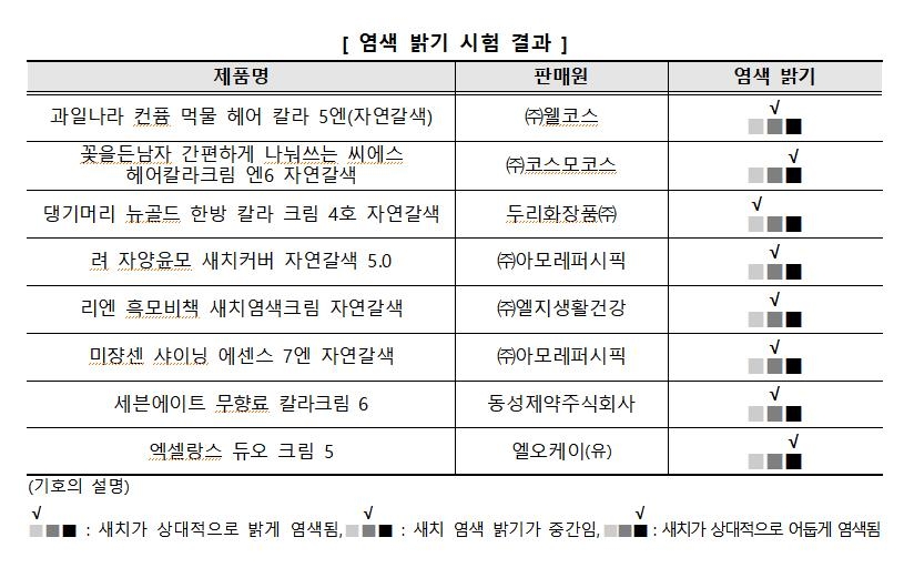 | ▲ 염색 밝기 시험결과 [한국소비자원 제공, 재판매 및 DB 금지] |