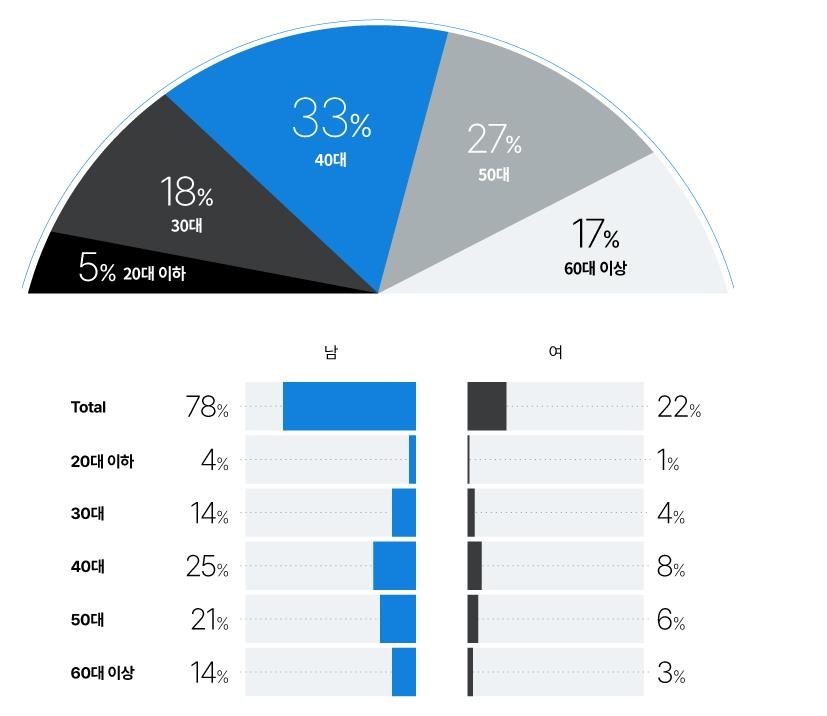 성별은 남성이 78%로 여성(22%)보다 많았다.