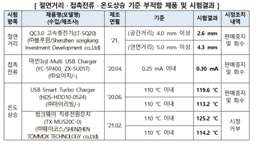 (서울=연합뉴스) 황희경 기자 = 스마트폰 등 모바일 기기를 충전하는 데 사용되는 고속충전기 중 일부 제품이 화재나 감전 등 안전사고 우려가 있는 것으로 나타났다.