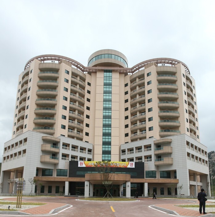 This photo, released by the unification ministry on Feb. 13, 2025, shows a reunion facility for separated families inside North Korea's Mount Kumgang tourist area on its east coast. The ministry said that North Korea was dismantling the facility and urged Pyongyang to immediately stop. (PHOTO NOT FOR SALE) (Yonhap)