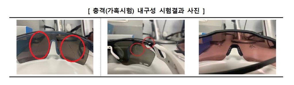 (서울=연합뉴스) 이신영 기자 = 한국소비자원은 시중에서 판매 중인 스포츠 선글라스 10개 제품을 시험·평가한 결과 자외선 차단율은 모두 우수했지만, 가격은 최대 11.6배나 차이가 났다고 15일 밝혔다.