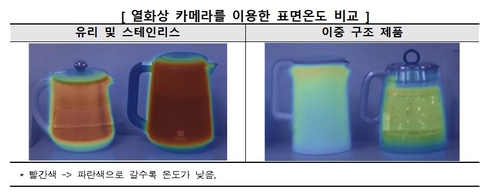 | ▲ 열화상 카메라를 이용한 무선주전자 표면온도 비교 [한국소비자원 제공] |