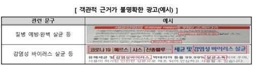 다만 일부 제품은 사용기한, 사용상 주의사항 등 의무 기재사항을 제품에 적지 않거나 '질병 예방', '코로나바이러스 살균' 등 객관적 근거가 불명확한 광고를 하는 것으로 나타났다.