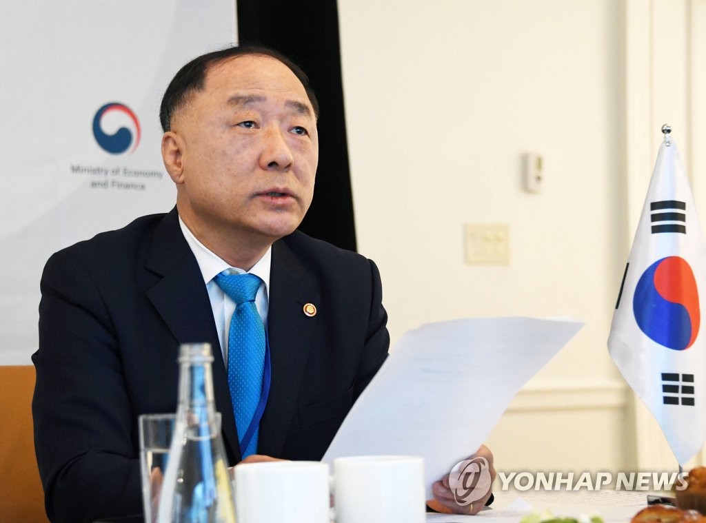 Finance Minister Hong Nam-ki made the remarks during a Group of 20 (G-20) meeting of finance ministers and central bank governors in Washington, D.C., on Wednesday (local time).