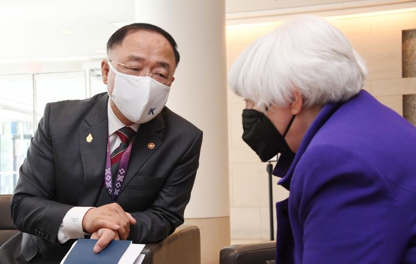 On the sidelines of the G-20 gathering, Hong held talks with U.S. Treasury Secretary Janet Yellen on Wednesday and said South Korea is "positively" considering joining a new U.S.-proposed economic framework in the Indo-Pacific region.