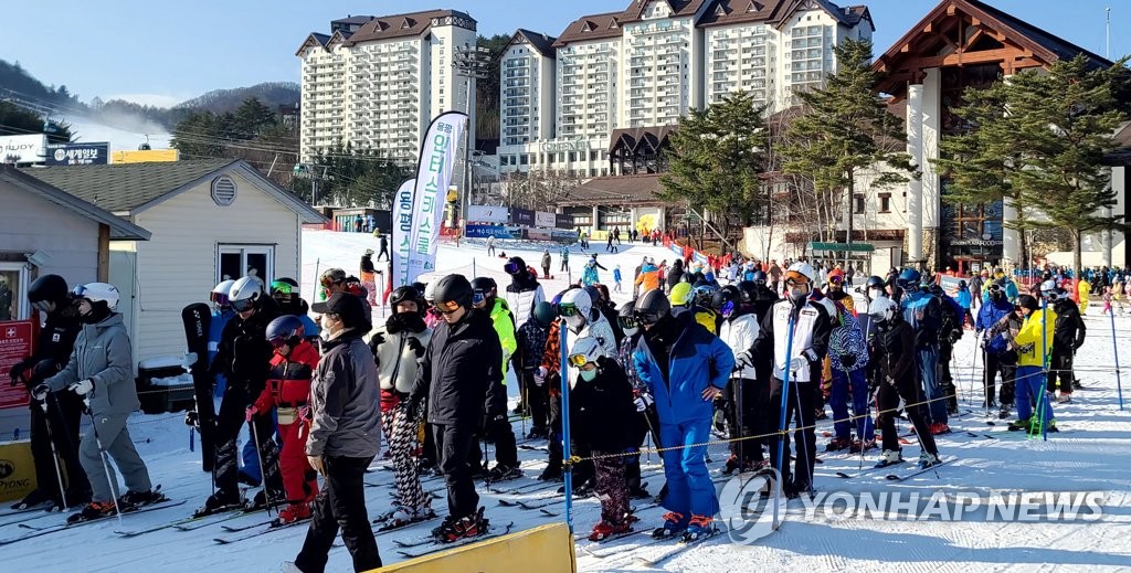| ▲ 겨울을 즐기는 스키어들 (평창=연합뉴스) 유형재 기자 = 11일 강원 평창군 용평스키장에 겨울 낭만을 만끽하려는 많은 스키어와 스노보더가 찾아 리프트 앞에서 차례를 기다리고 있다. 2022.12.11 yoo21@yna.co.kr |