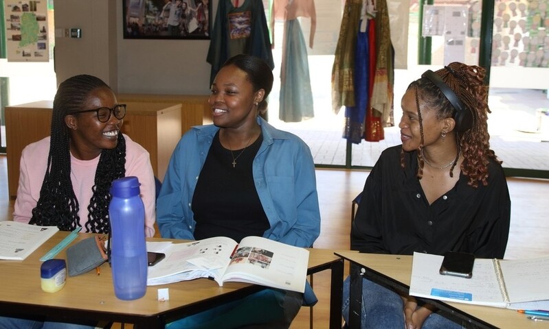 | ▲ 한류를 주제로 대화 나누는 보츠와나 세종학당 수강생들 (가보로네=연합뉴스) 성도현 기자 = 보츠와나의 가보로네 세종학당에서 한국어 중급반 수업을 듣는 학생들이 11일(현지시간) 한류를 주제로 대화를 나누고 있다. 왼쪽부터 타피와 마가가네, 코케초 시엘레, 모디리 카타이. 2024.5.14 raphael@yna.co.kr |