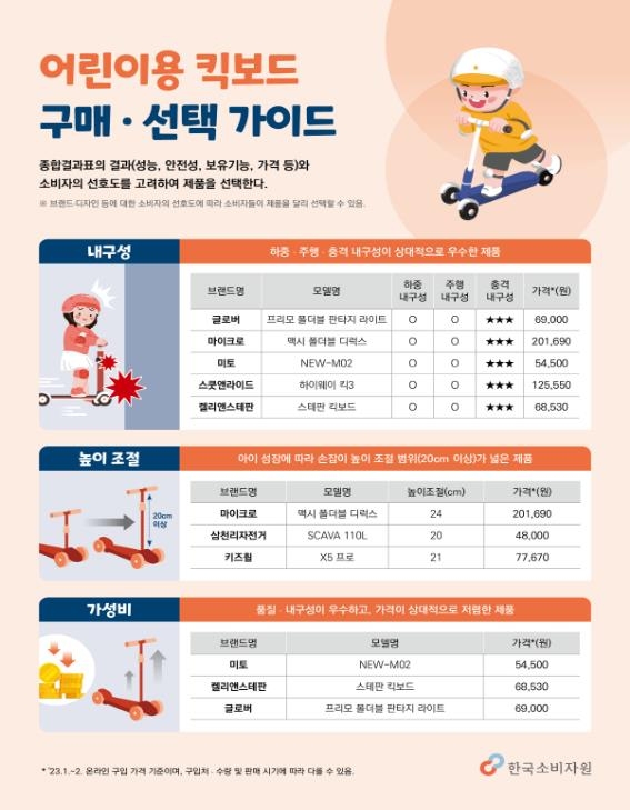 소비자원 "어린이 킥보드, 제품별로 내구성에 차이"