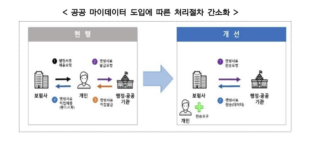 | ▲ 공공 마이데이터 도입에 따른 처리절차 간소화 [생·손보협회 제공] |