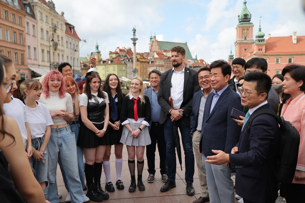 취임 후 첫 해외순방으로 폴란드를 방문 중인 김 의장은 이날 현지 한국대사관 직원 격려 오찬을 하고 나오다 바르샤바의 구시가지에서 K팝 노래에 맞춰 길거리 공연을 하던 10여명의 10대들과 조우했다.