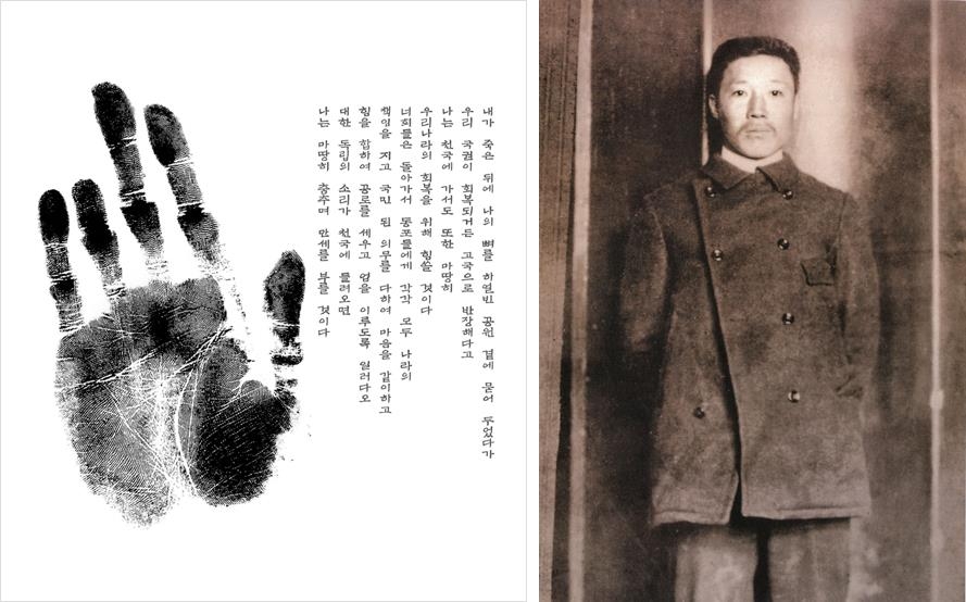 자신과 같은 해, 같은 달에 태어난 일본인 간수 시타라 마사오(設樂正雄)에게 준 글은 두 글자. 간절한 염원과 굳은 의지가 담긴 '獨立'(독립)이었다.