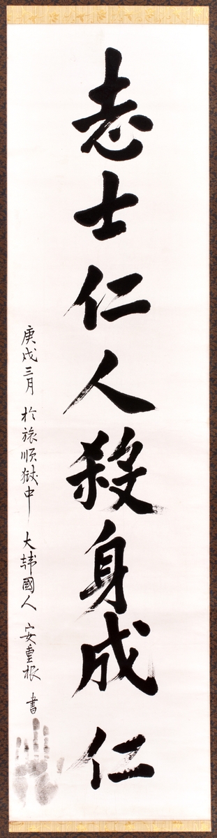 안중근 의사가 순국 전에 쓴 이 글씨가 15년 만에 한국에서 공개된다. 1909년 10월 26일 하얼빈에서 이토 히로부미(伊藤博文)를 저격한 의거 115주년 만이다.