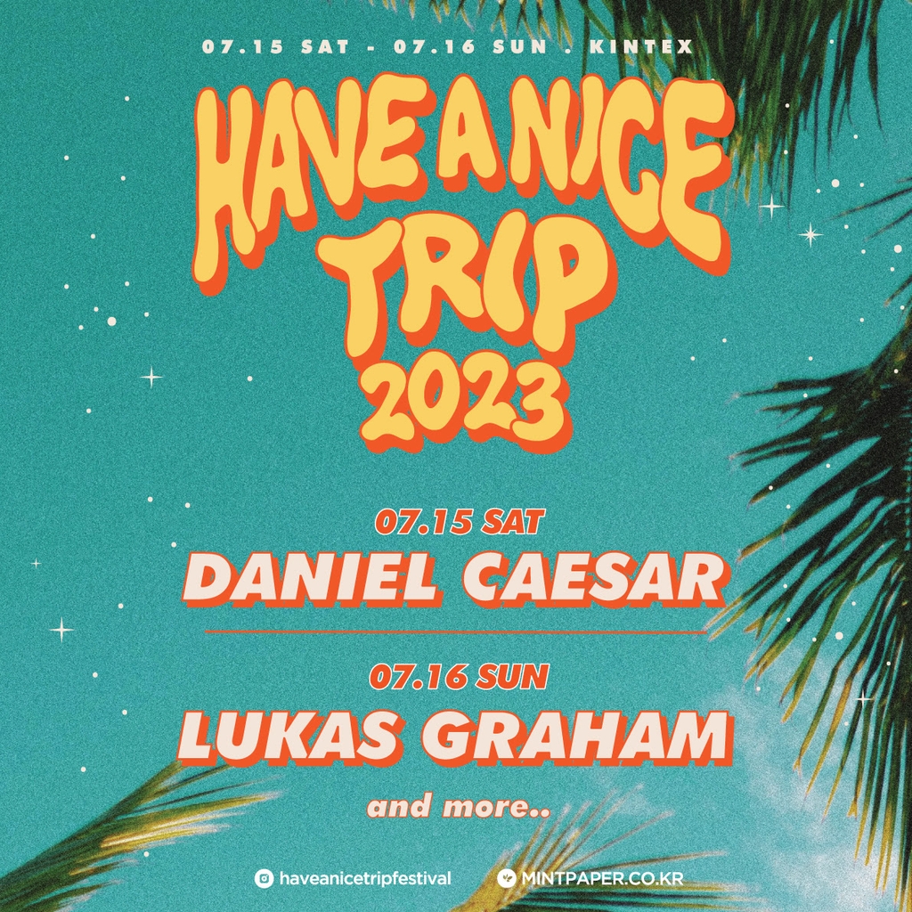 (서울=연합뉴스) 이태수 기자 = ▲ 다니엘 시저·루카스 그레이엄 출연 '해브어 나이스 트립' = 민트페이퍼는 오는 7월 15∼16일 고양 킨텍스 제2전시장에서 음악 페스티벌 '해브 어 나이스 트립 2023'(HAVE A NICE TRIP 2023)을 연다고 23일 밝혔다.