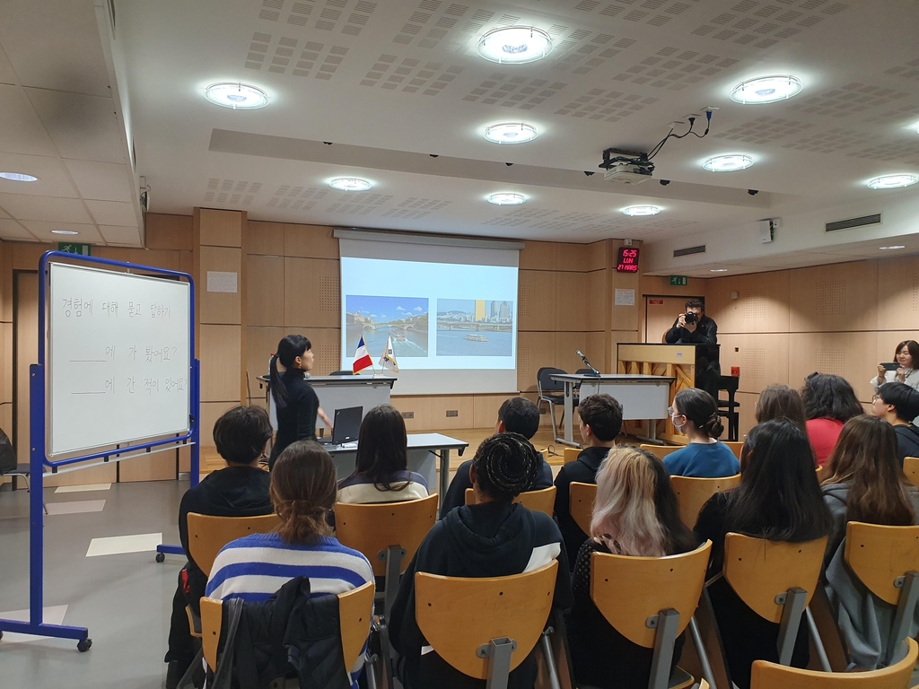 한국어 수업은 매주 한 번 열린다. 수업에는 이 학교 소속 학생뿐 아니라 파리 시내에 있는 10여개 고교에서 한국어를 선택한 학생들이 참여한다.