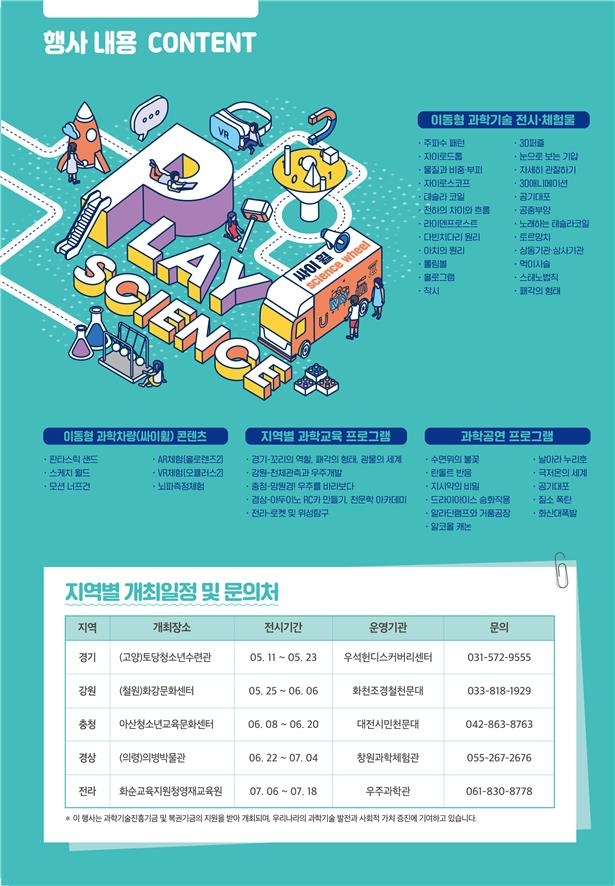 (서울=연합뉴스) 조승한 기자 = 과학기술정보통신부와 한국과학창의재단, 한국과학관협회는 11일부터 7월 18일까지 전국 5개 지역 순회 '찾아가는 과학관' 행사를 연다고 10일 밝혔다.