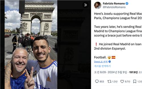 | ▲ 레알 마드리드 응원 나선 호셀루 [파브리치오 로마노 기자 트위터 캡처. 재판매 및 DB 금지] |