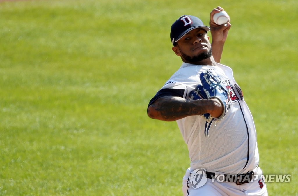 | ▲ In this file photo from Oct. 24, 2021, Ariel Miranda of the Doosan Bears pitches against the LG Twins in the top of the third inning of a Korea Baseball Organization regular season game at Jamsil Baseball Stadium in Seoul. (Yonhap) |