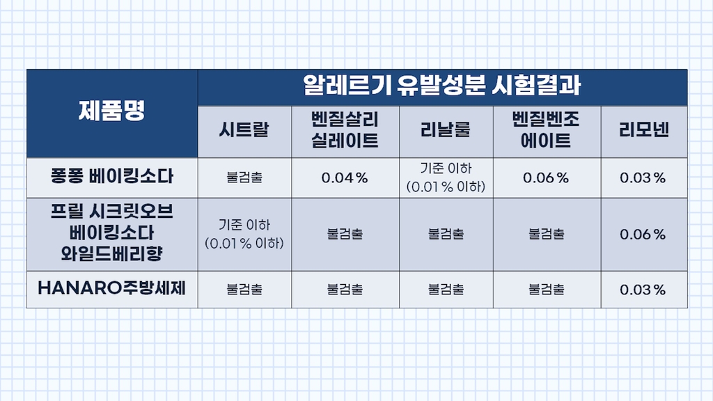 ◇ 형광증백제·중금속 없어…알레르기 유발성분 3개 제품서 검출