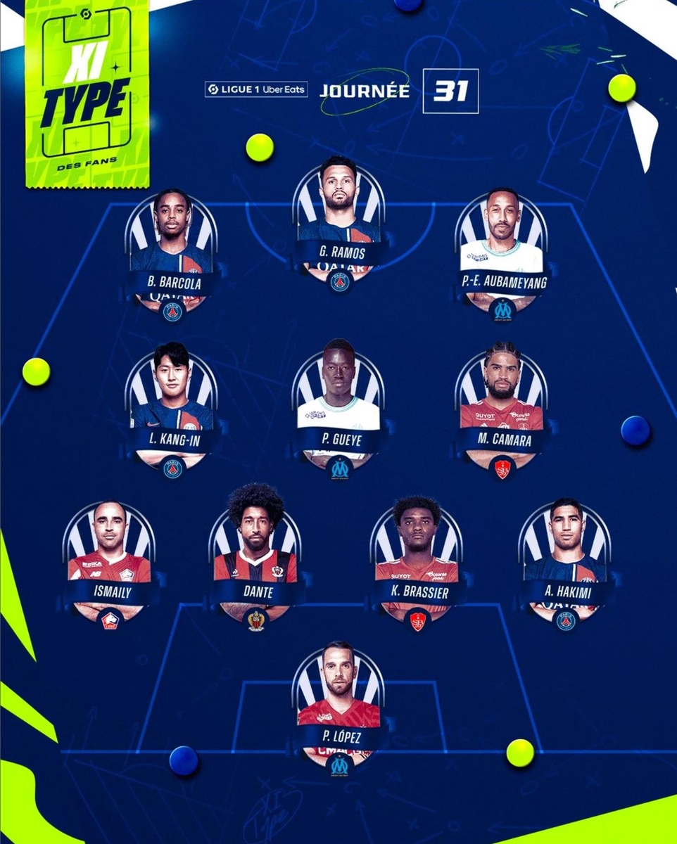 | ▲ 2023-2024 프랑스 리그1 31라운드 베스트 11 [리그1 SNS 캡처. 재판매 및 DB 금지] |