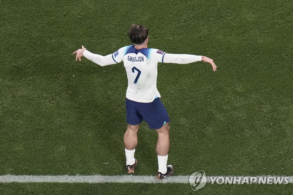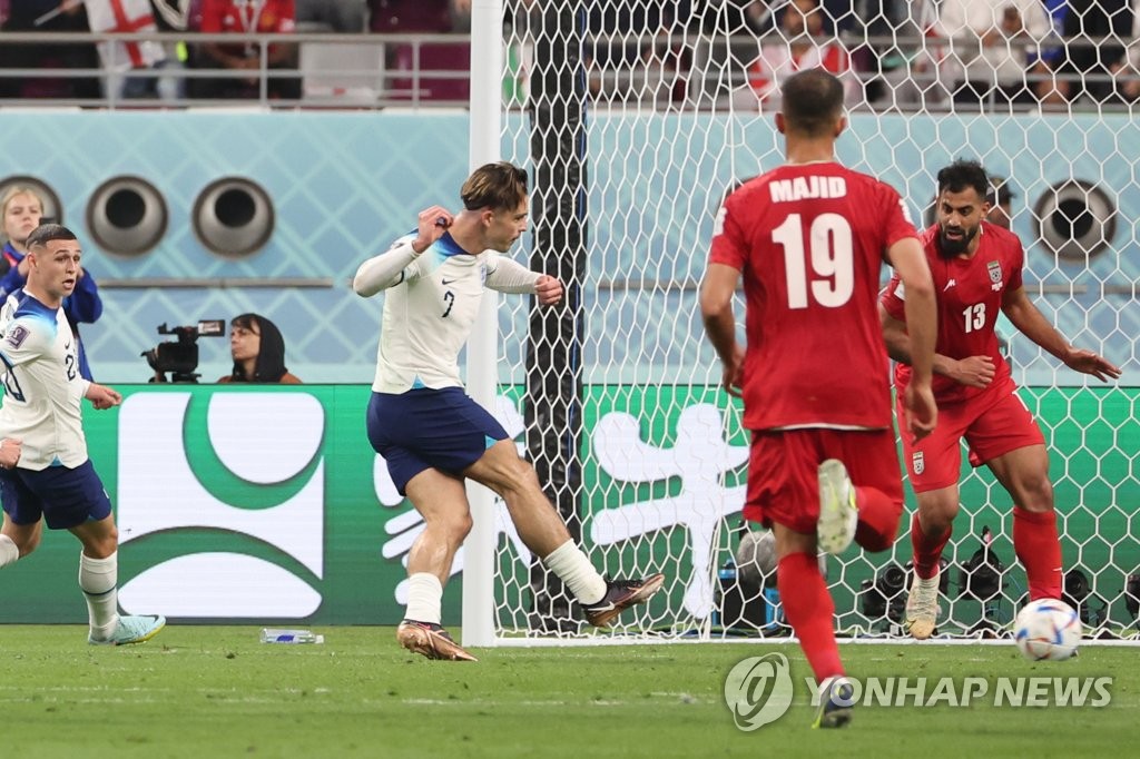 | ▲ 득점하는 그릴시 (도하=연합뉴스) 김주성 기자 = 21일 오후(현지시간) 카타르 도하의 칼리파 인터내셔널 스타디움에서 열린 2022 카타르 월드컵 조별리그 B조 1차전 잉글랜드 대 이란 경기. 잉글랜드의 잭 그릴리시가 골을 넣고 있다. 2022.11.22 utzza@yna.co.kr |