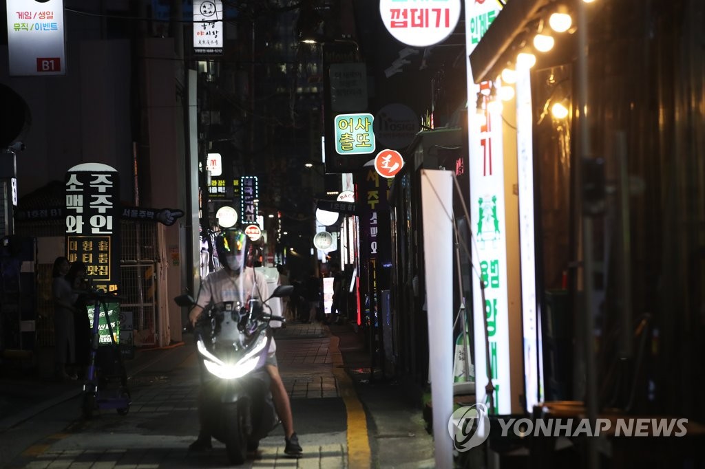 | ▲ 식당가 정적 가르는 배달 (서울=연합뉴스) 강민지 기자 = 사회적 거리두기 4단계 적용 첫날인 12일 저녁 서울 강남역 일대 식당가에서 라이더가 배달을 나서고 있다. 이날 오후 6시부터 수도권 내 모든 식당과 카페, 노래방은 거리두기 지침에 따라 3인 이상 모임이 금지된다. 2021.7.12 mjkang@yna.co.kr |