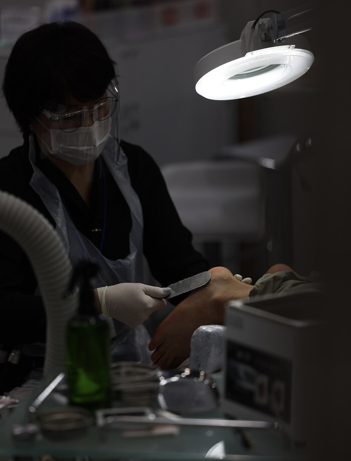 A pedicure worker takes part in the International Beauty Expo at the EXCO convention center in the southeastern city of Daegu on May 16, 2025. (Yonhap)