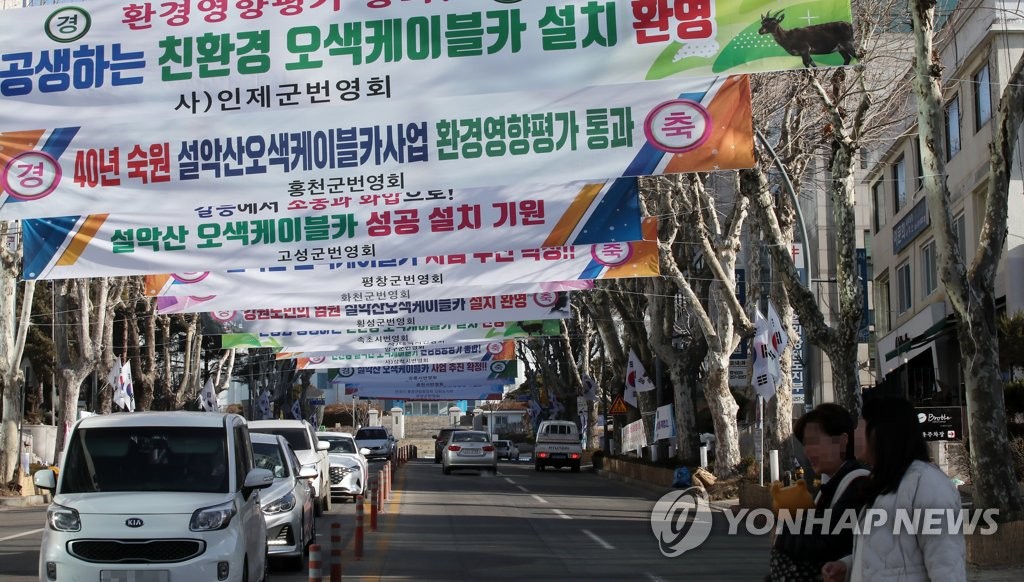 | ▲ 설악산 오색케이블카 설치 환영 현수막 물결 [연합뉴스 자료사진] |