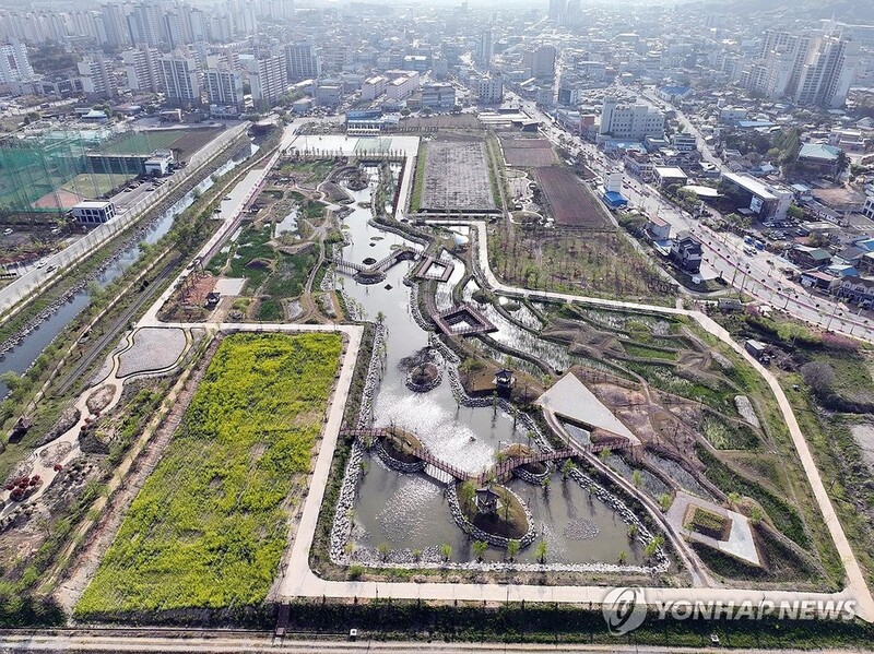 공원은 수생식물이 집단 서식하는 연못 정원, 저류지를 이용한 물터 정원, 생태 친화적 공간으로 꾸민 자연마당 정원 등 6개 테마정원으로 꾸며져 있다.