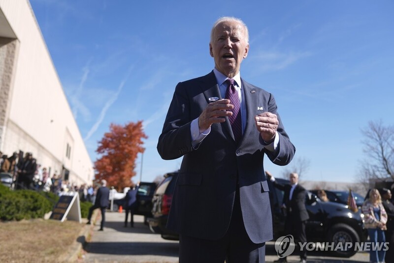 | ▲ President Joe Biden speaks with reporters after casting his early-voting ballot for the 2024 general election at a polling station in New Castle, Delaware on Oct. 28, 2024 in this photo released by the Associated Press. (Yonhap) |