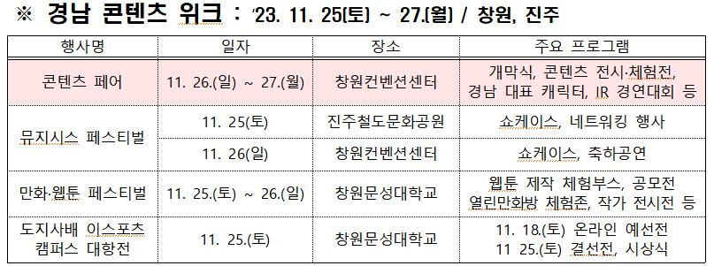 | ▲ 경남 콘텐츠 위크 행사 개요 [경남도 제공. 재판매 및 DB 금지] |
