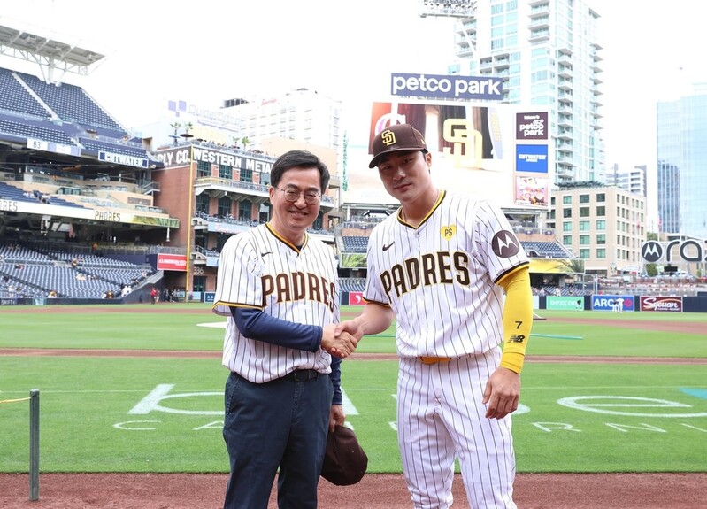 김 지사는 이날 오후 캘리포니아주 샌디에이고 홈구장인 펫코 파크에서 열린 샌디에이고 파드리스와 콜로라도 로키스의 경기에 앞서 시구자로 나섰다.