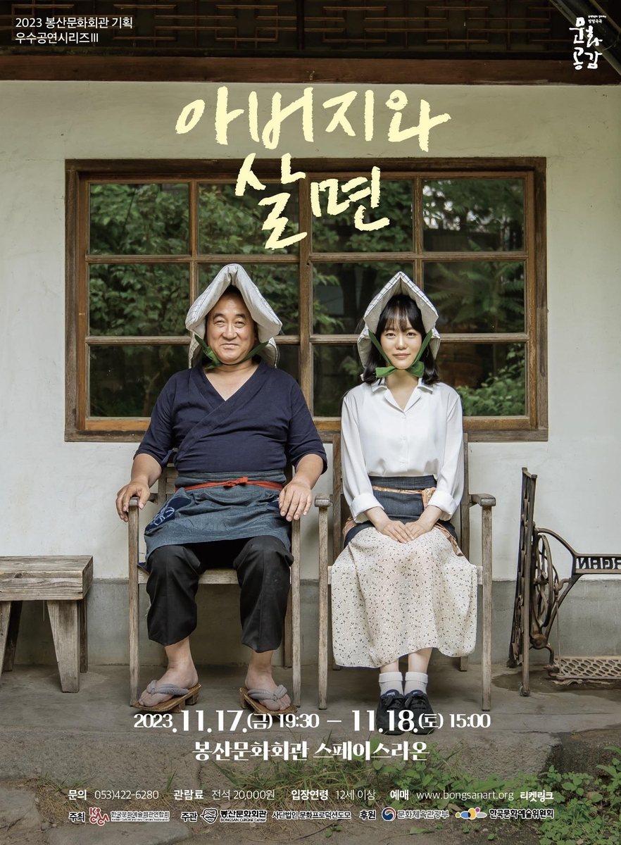 (대구=연합뉴스) 류성무 기자 = 대구 봉산문화회관은 오는 17∼18일 소극장 스페이스라온에서 연극 '아버지와 살면'을 무대에 올린다고 14일 밝혔다.