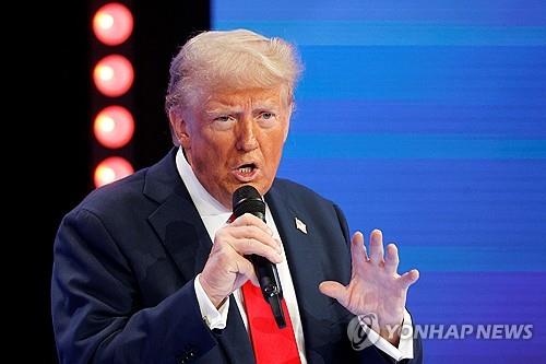 ▲ Former U.S. President Donald Trump speaks in a town hall presented by Spanish-language network Univision in Doral, Florida on Oct. 16, 2024 in this photo released by Reuters. (Yonhap)