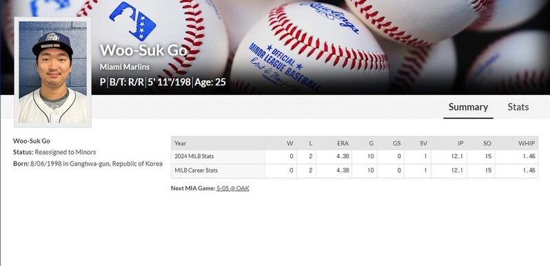 | ▲ MLB 마이애미 산하 트리플A 잭슨빌 홈페이지에 소개된 고우석 [잭슨빌 구단 홈페이지 캡처. 재판매 및 DB 금지] |