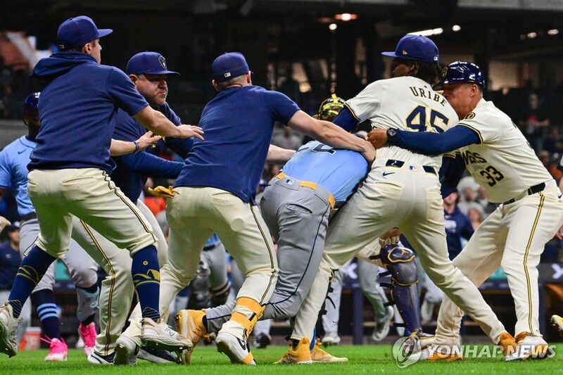 MLB 탬파베이-밀워키 경기서 선수간 주먹질로 벤치 클리어링