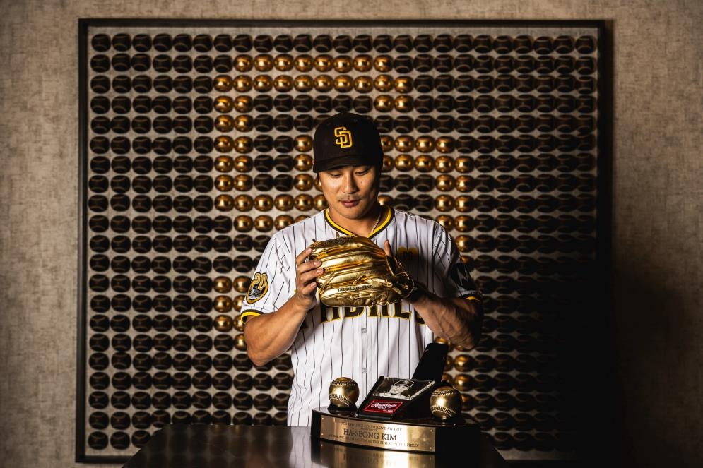 (서울=연합뉴스) 김경윤 기자 = 2023시즌 골드글러브 수상자인 샌디에이고 파드리스의 주전 내야수 김하성(28)이 뒤늦게 황금장갑을 받았다.