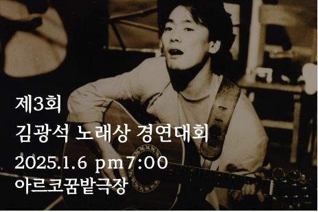 (서울=연합뉴스) 이태수 기자 = 제3회 김광석 노래상 경연대회가 다음 달 6일 서울 아르코꿈밭극장(구 학전블루 소극장)에서 열린다고 김광석추모사업회가 17일 밝혔다.