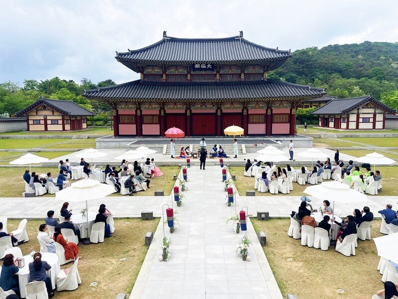 지난 11일에는 한국 신부와 영국 신랑이 가야왕궁 태극전 앞에서 전통 혼례식을 올리며 특별한 결혼사진을 촬영했다.