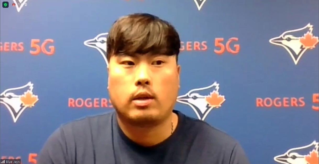 | ▲ 화상 인터뷰하는 류현진 (서울=연합뉴스) 토론토 블루제이스의 류현진이 8일 메이저리그 볼티모어 오리올스와의 방문 경기에 선발 등판한 뒤 취재진과 화상 인터뷰를 하고 있다. 2021.7.8 [토론토 블루제이스 화상 인터뷰 캡처. 재판매 및 DB 금지] |