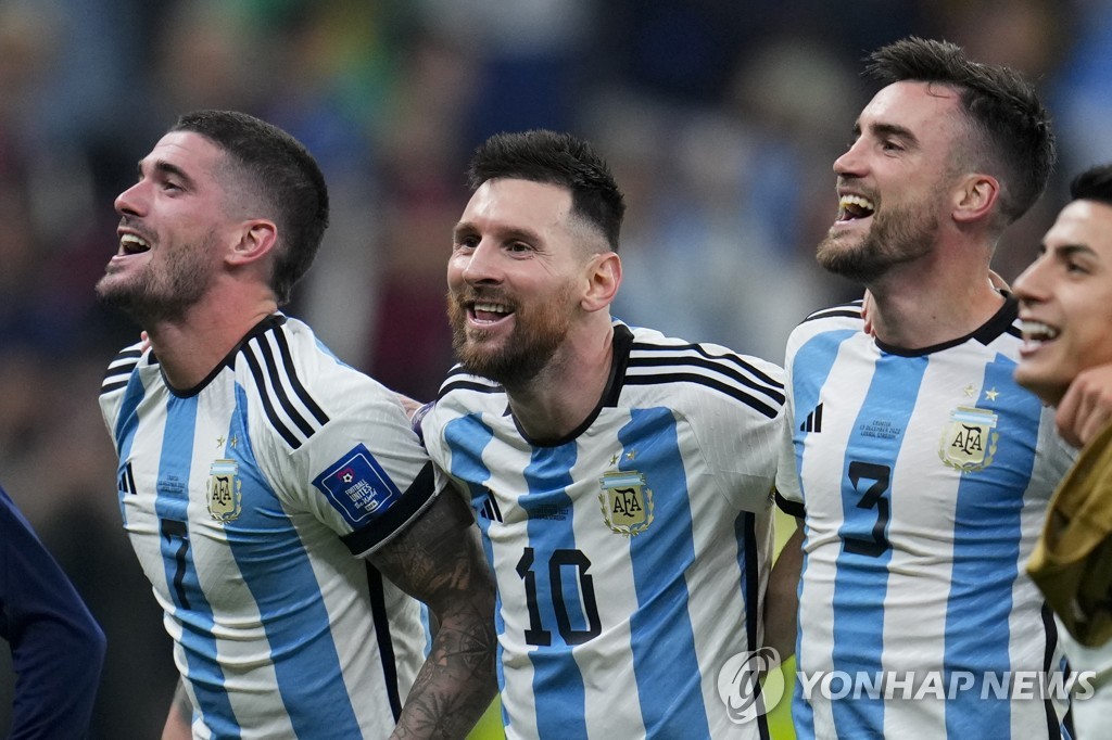 | ▲ 카타르 월드컵 결승이 확정되자 동료들과 기뻐하는 리오넬 메시 (도하 AP=연합뉴스) 13일(현지시간) 카타르 월드컵 4강전에서 아르헨티나가 3-0으로 크로아티아를 이기고 결승에 진출했다. 2022.12.14 photo@yna.co.kr |