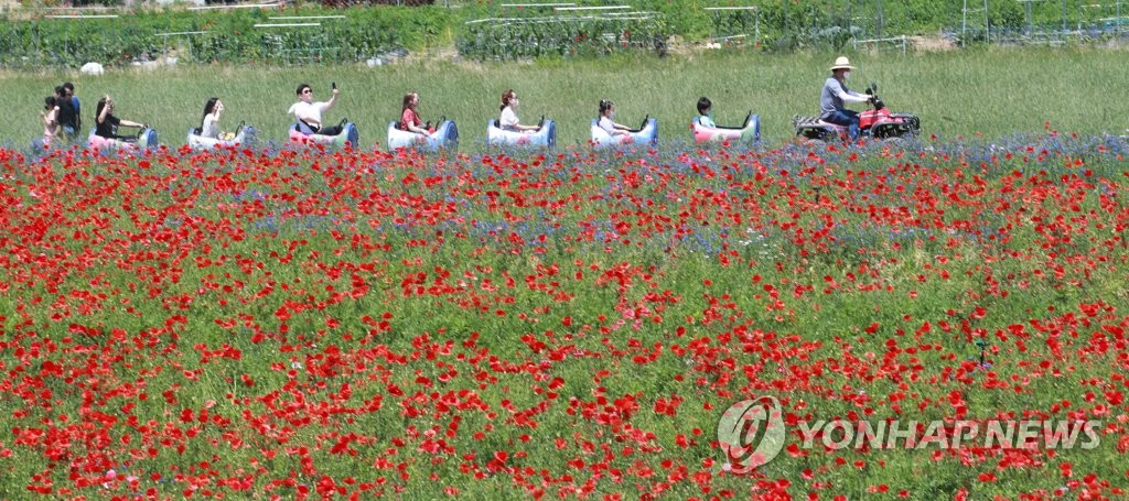 | ▲ 붉은 꽃양귀비밭 가로지르는 깡통열차 [연합뉴스 자료사진] |
