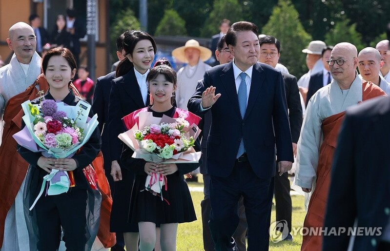 On Sunday, Kim accompanied Yoon's attendance at a ceremony celebrating the return of rare Buddhist relics from an American museum at a temple in Yangju, some 30 kilometers north of Seoul, with some 4,000 attendees on hand.