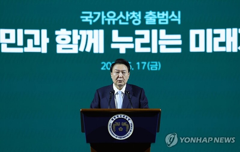 SEOUL, May 17 (Yonhap) -- President Yoon Suk Yeol launched the renamed government agency for cultural heritage matters on Friday, saying the focus will expand from preserving cultural assets to further developing and spreading them.