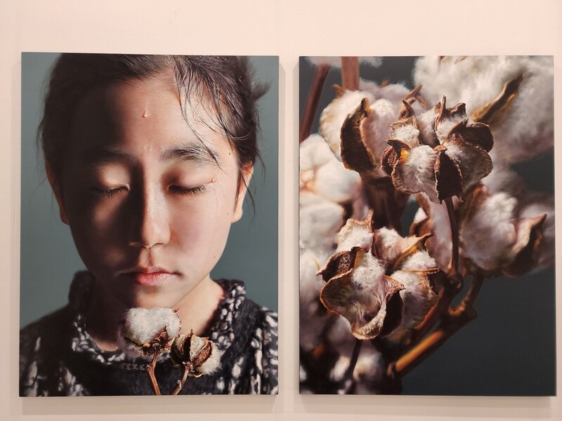 At his Connect booth, he showcased some of his key paintings created over the last few years, including portraits combined with paintings of cotton branches.