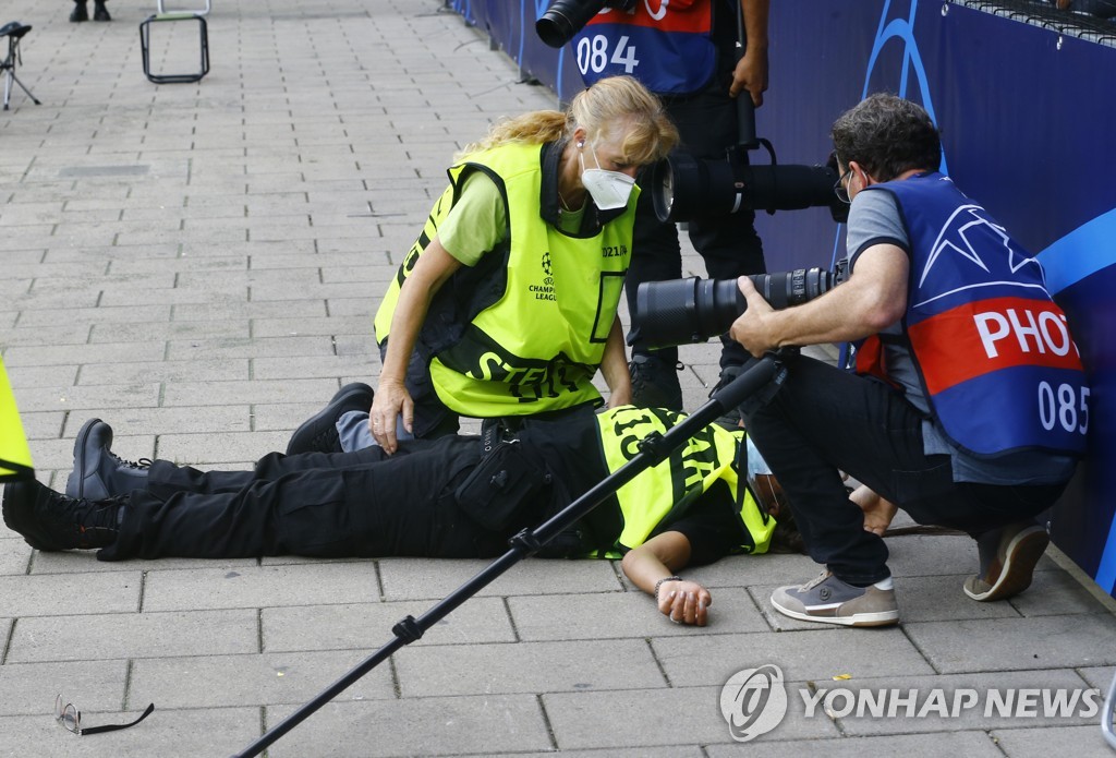 | ▲ 쓰러진 진행요원 [로이터=연합뉴스] |