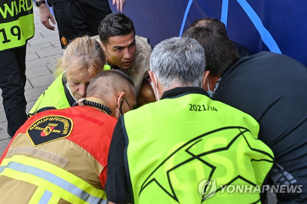경기 전 호날두 연습 슈팅에 맞은 진행요원 쓰러지기도