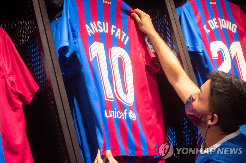 | ▲ 등번호 10번이 새겨진 바르셀로나 안수 파티의 유니폼. [EPA=연합뉴스] |